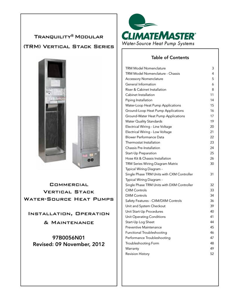 Installation, operation & maintenance manual. One (1) new climatemaster 4 ton water source heat pump tranquility 16. Also note that additional literature categories, including thermostats & service tool, accessories, obsolete products, charts and forms, technical bulletins, and case studies, are available. It was a visibly charred, burnt up circuit board. Never installed or put into service!
